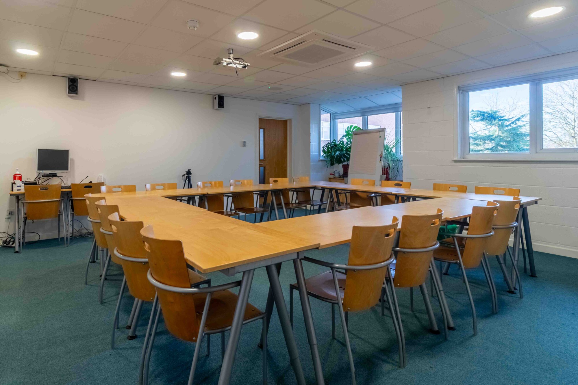 Our dedicated meeting room can accommodate up to 22 people. There is a small kitchen connected to the room which can be used for refreshments and toilet facilities are also available.